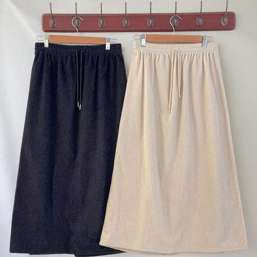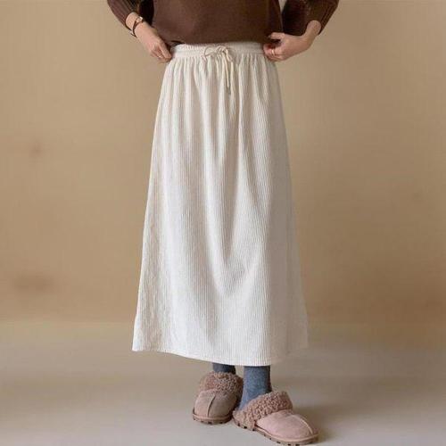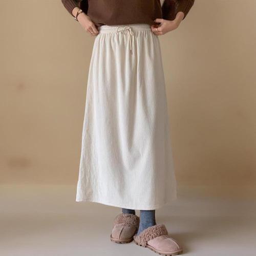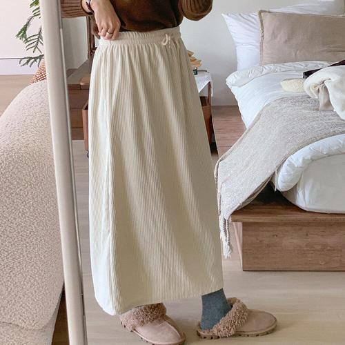 [신상오픈런]여성용 코듀로이 A라인 기모 롱스커트 뒤트임 밴딩