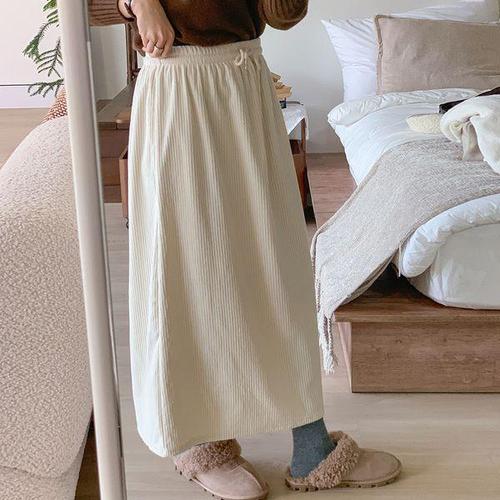 [신상오픈런]여성 코듀로이 A라인 기모 롱스커트 뒤트임 밴드형