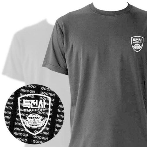 [셀럽하우스]라운드 HISJ5016 반팔 특전사 캘리그라피 커스텀 화이트 쿨 티