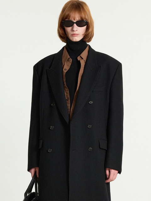 [티엔지티] Heavy Wool Double-breasted Coat (Black) TNCO5F101BK