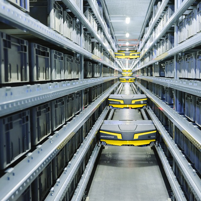 고밀도 보관으로 창고 면적 효율 향상. 부품 및 소형 화물 보관에 최적화된 시스템