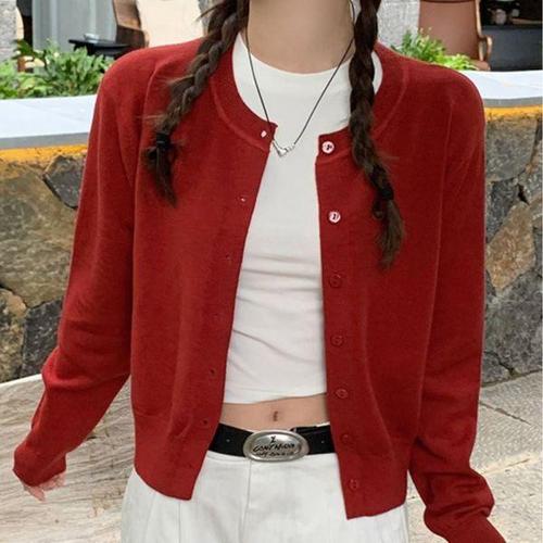 [에이치플러스몰]파스텔 무드 라운드넥 베이직 가디건 UJS-012