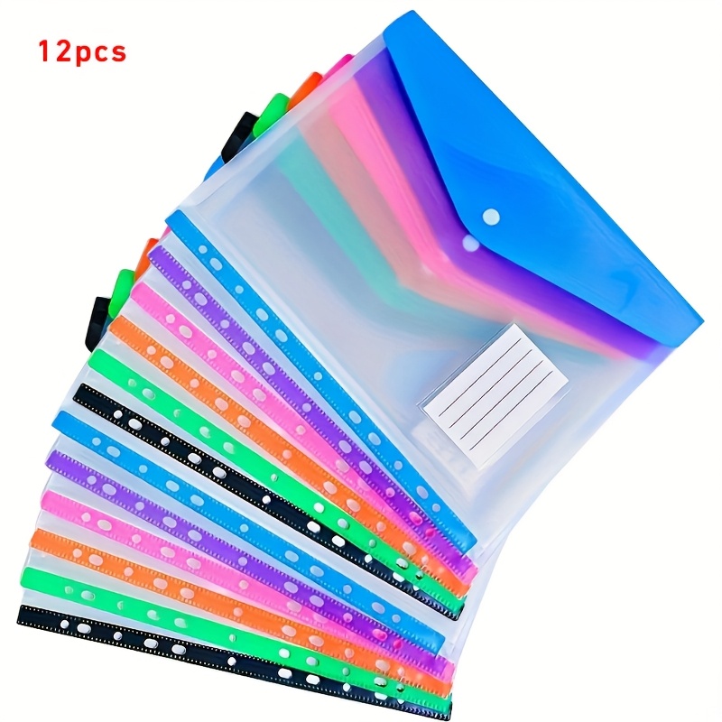 TEMU 12개입, 대용량 11포켓 확장형 파일 폴더, 내구성이 뛰어난 PP 소재, 스냅 버튼 및 라벨 포함, 투명, 6가지 색상으로 제공, 사무실, 학교 및 가정 보관에 적합