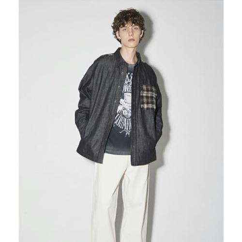 [버커루]남성 체크 배색 패딩 데님 셔츠 자켓-DG