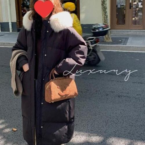 [신상오픈런]여성 후드 퍼 장식 롱 패딩 겨울용 데일리 코트