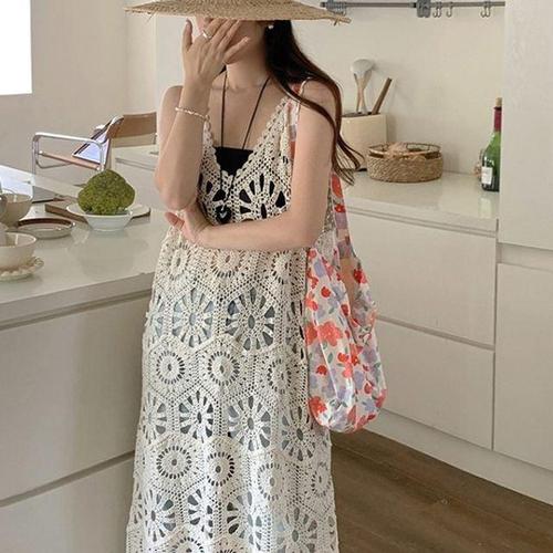 이쁘다요 펀칭레이스 원피스 니트 롱 나시 WFLMEPU