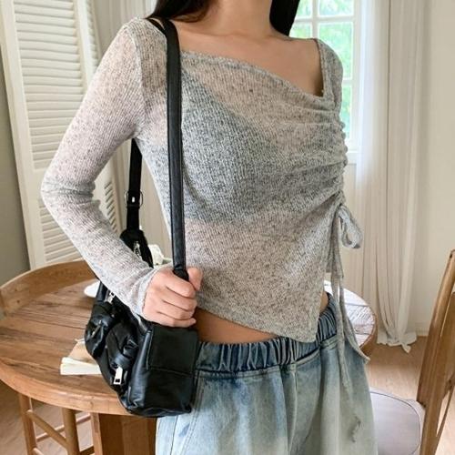 [다잇템][다잇템] 여성 비침 망사 마원단 잔주름 롱슬리브 언발 니트_21208402_588872