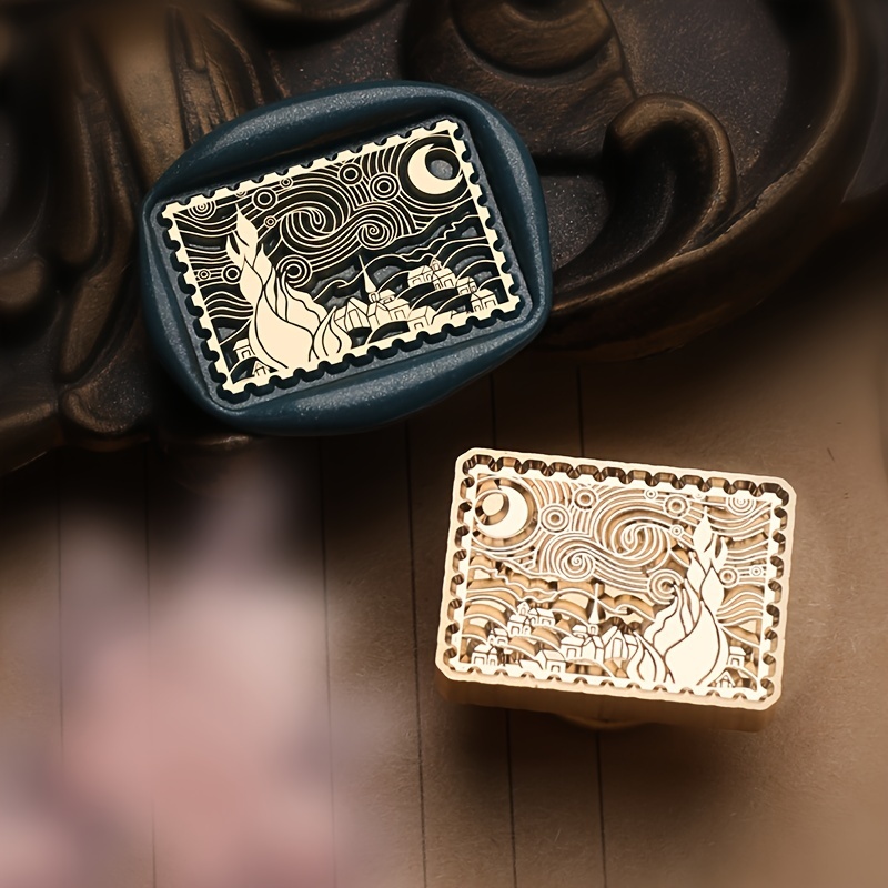 TEMU 반 고흐 - 별이 빛나는 밤 봉인 왁스 스탬프 헤드 1개, 분리 가능한 황동 봉인 왁스 스탬프 헤드, 분리 가능한 라커 봉인 구리 헤드, 초대장 봉인 황동 헤드 시그너처 DIY 공예 교체 휴일 선물