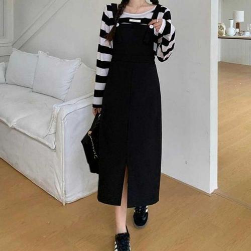 [하프클럽/]여성 빅사이즈 체크포켓 멜빵 겨울 롱 원피스
