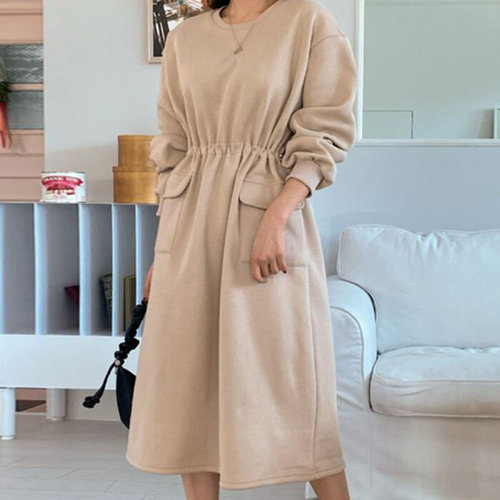 레이츄 / 듀얼 스트링 루즈핏 포켓 기모 롱 원피스