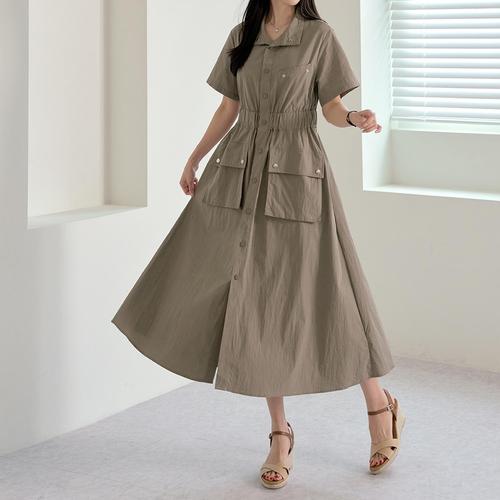 [옷자락] 여성 투웨이 포켓 카라 롱셔츠 원피스