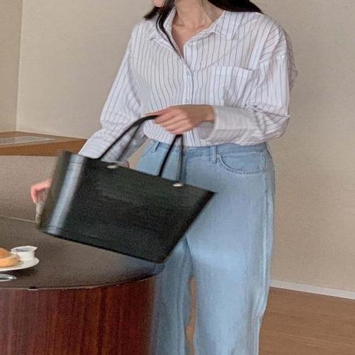 [신상오픈런]|KMH2AD1|폰라이 롱슬리브 심플 셔츠 간절기 여성 줄지 오피스룩 주머니_18156043_597559