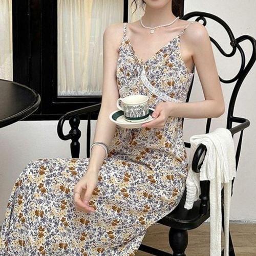 해외여행원피스 쉬폰원피스 여자 끈나시 쉬폰 잔 WFLMSKX