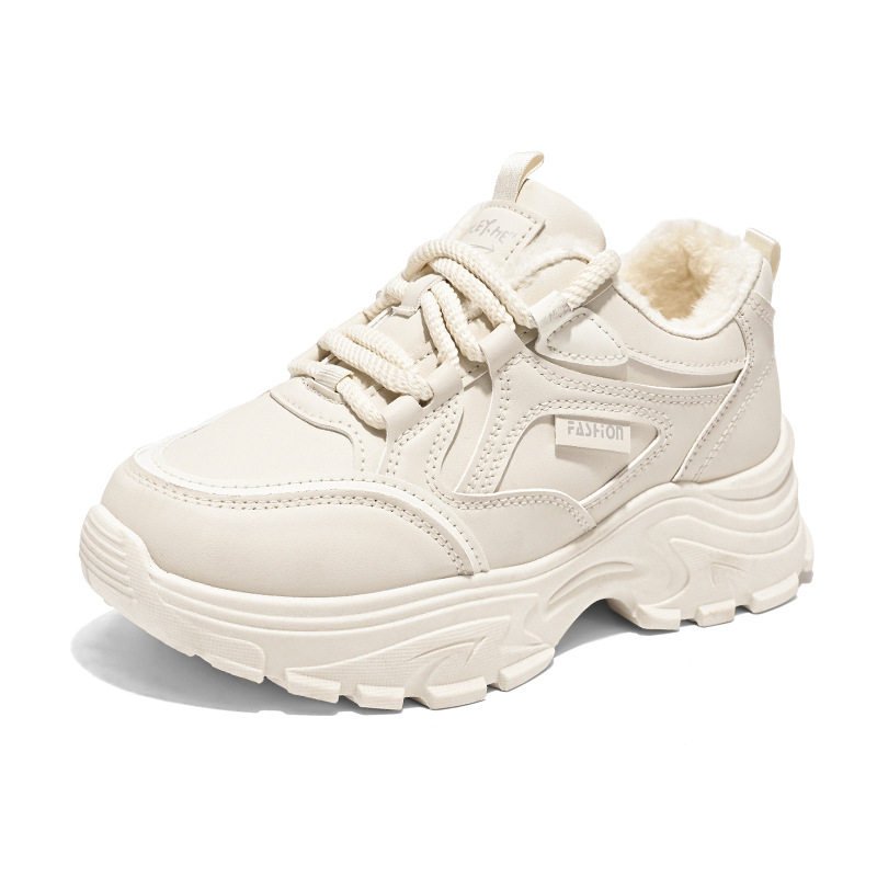 TEMU 여성용 따뜻한 신발 - 플리스 안감, 두꺼운 밑창, 스포츠 및 캐주얼 러닝에 적합한 한국 스타일 아빠 스니커즈, 트렌디한 신발|운동화|러닝화|여성운동화