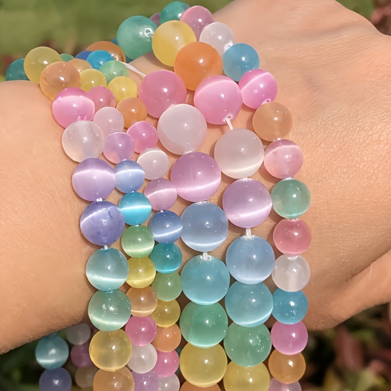 TEMU 6/8/10mm - 마카롱 색상의 고양이 눈 보석 약 60/45/35개입 - 그라데이션 컬러 분포와 자연스러운 광택이 있는 비즈, 팔찌, 주얼리 공예에 적합