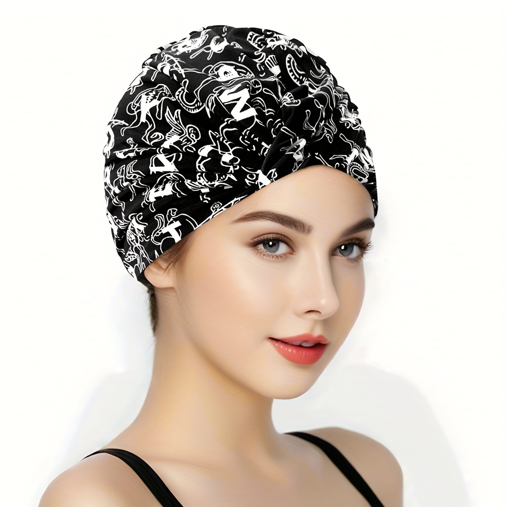 TEMU 여성용 부드럽고 통기성이 좋은 이중층 수영 모자 - 빠른 건조, 수영, 서핑 및 수영 스포츠에 적합한 편안한 핏, 혼합 색상, 높은 탄성 프린트, 헤드밴드 - 머리 보호, 수영 장비에 이상적 - 탄성 헤드밴드, 편안한 핏 모자, 수영 모자|서핑모자