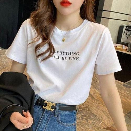 네모엔룩 여성용 컬러레터링 라운드넥 반팔 티셔츠