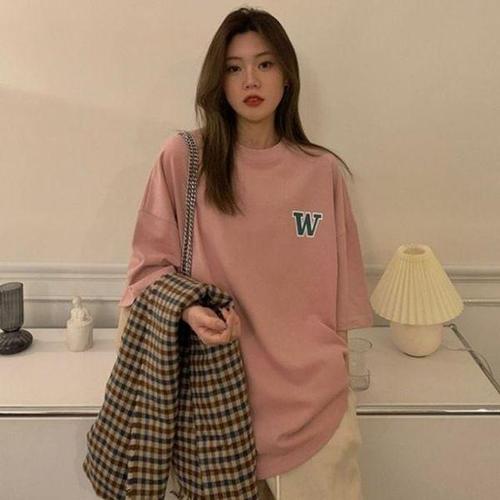 [에이치플러스몰]여성용루즈핏 로고프린트 클래식 하프슬리브 반팔티