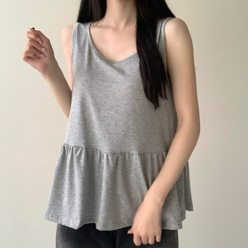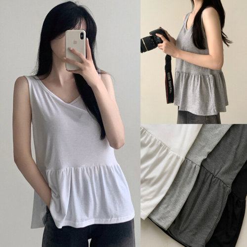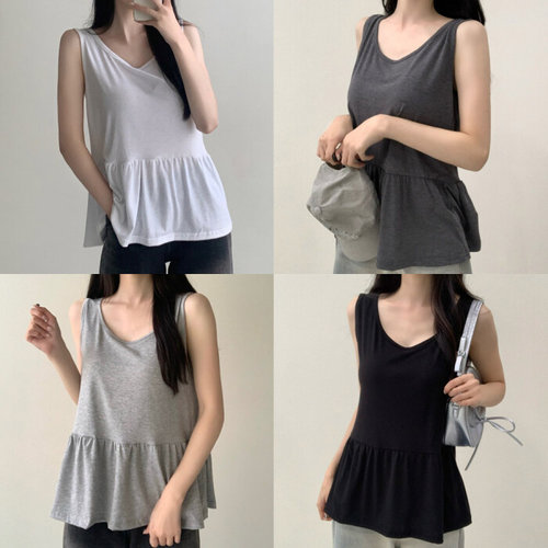 [골지스판] 데일리 더블 프릴 미니 캉캉 레이어드 나시 민소매티 7colors