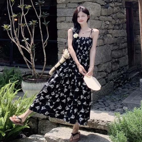 여성 플라워원피스 끈나시 뷔스티에 롱원피스 여름 WFLOJZF