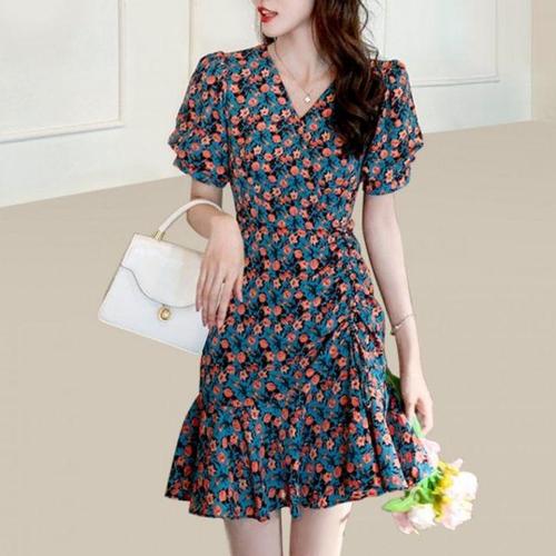 브이넥 랩미니원피스 여자 체형커버 여름 플라워 WFLMSKL