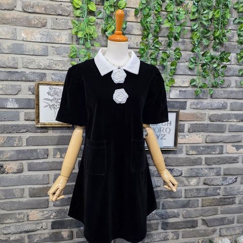 퐁당 / 화이트 플라워 카라 벨벳 미니 원피스