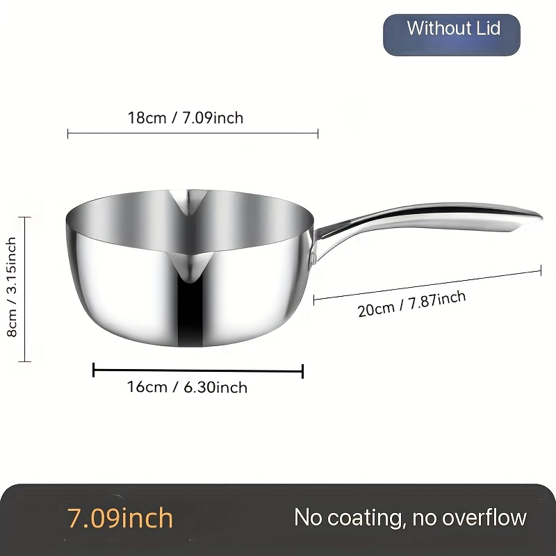 TEMU 스테인리스 스틸 스노우 플랫 포트 [18+20+22], 우유, 국수, 수프 가열에 적합. 레스토랑에 이상적인 선택, 청소가 쉬움, 가스 및 인덕션 조리기와 호환 가능, 필수 주방 도구