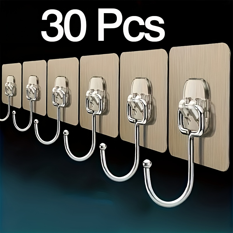 TEMU 30개 초강력 접착 드릴 불필요 후크 - 골드 후크 재사용 가능 - 주방 및 욕실 타일 벽에 적합, 수건, 조리 기구, 욕실 추가 장식 등을 쉽게 걸 수 있습니다.