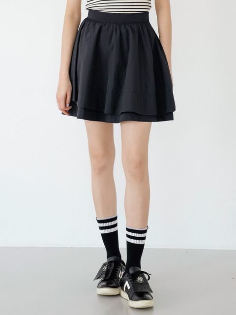 [니티나] 샤이니 더블 플레어 스커트 블랙