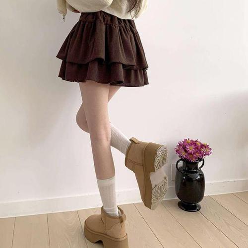 [옷자락]여자 겨울 따뜻한 프릴 플레어 미니 스커트