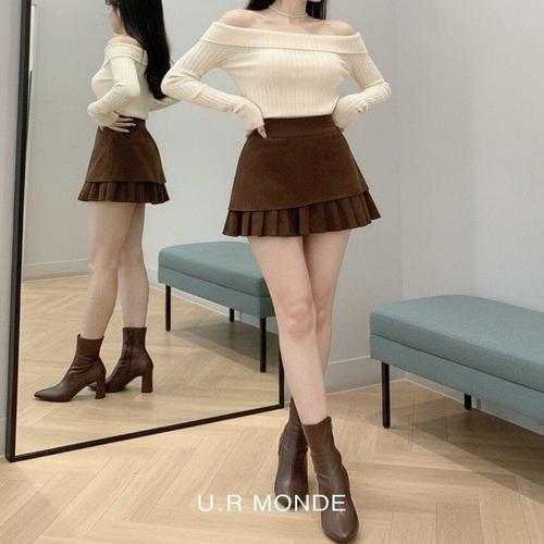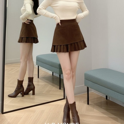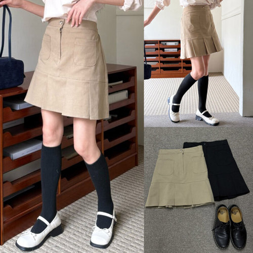 [유아몽드]A라인 플리츠 스웨이드 미니 스커트 스웨이드치마 속