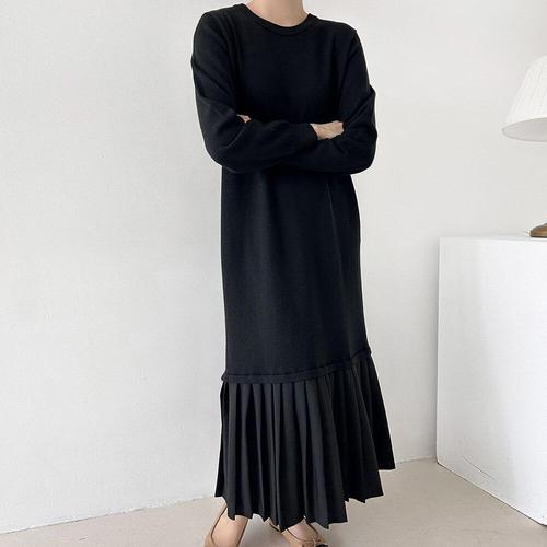 [옷자락] 여자 플리츠 콤비 무지 겨울 등원룩 니트 롱원피스