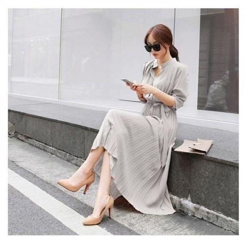 플리츠원피스 쉬폰원피스 롱 플리츠롱원피스 가을 WFLMTB7