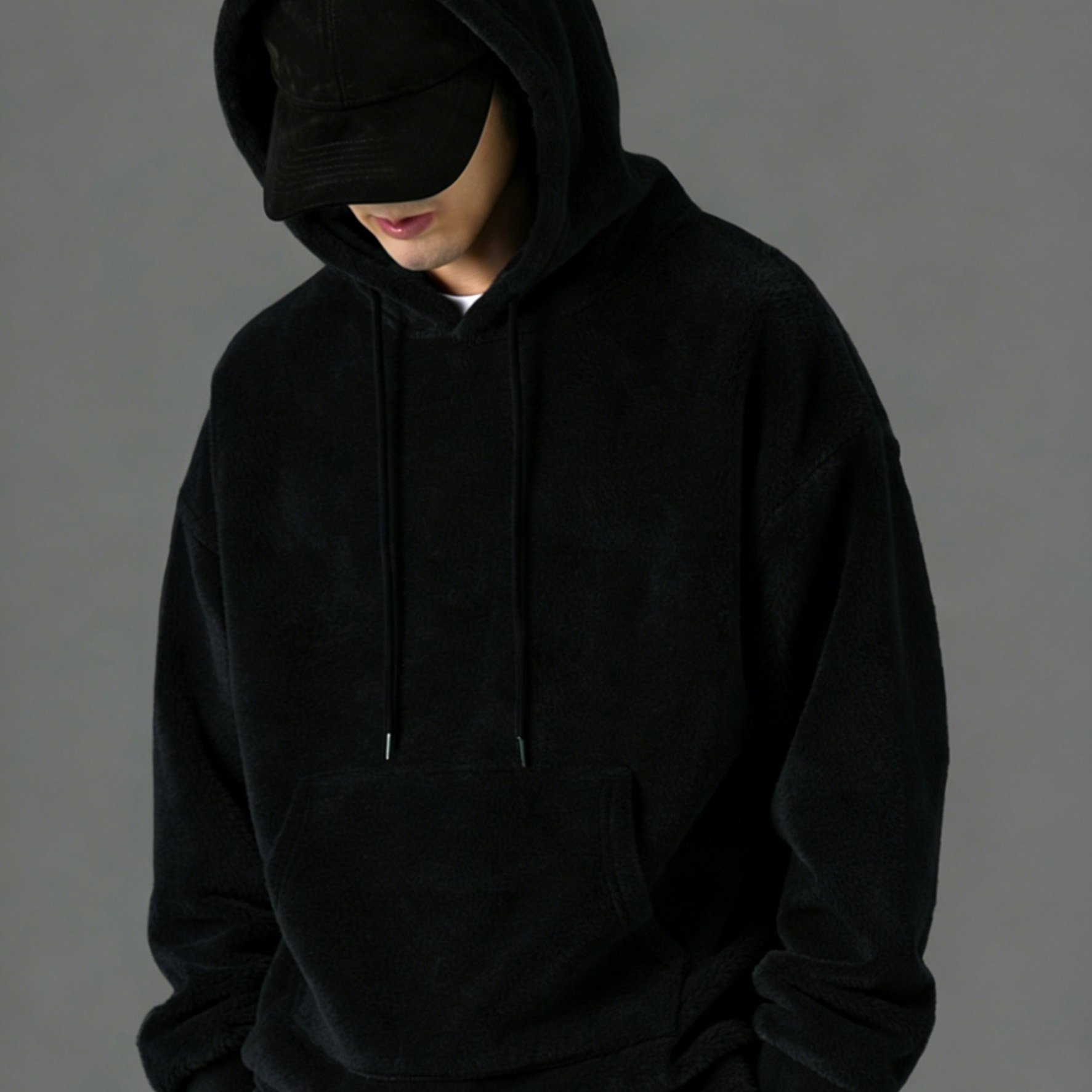 TEMU 크로스보더 신상 2024 가을/겨울 남성 패션 단색 코랄 플리스 캐주얼 후드티, 귀 패션 캐주얼 스포츠 스웨트셔츠