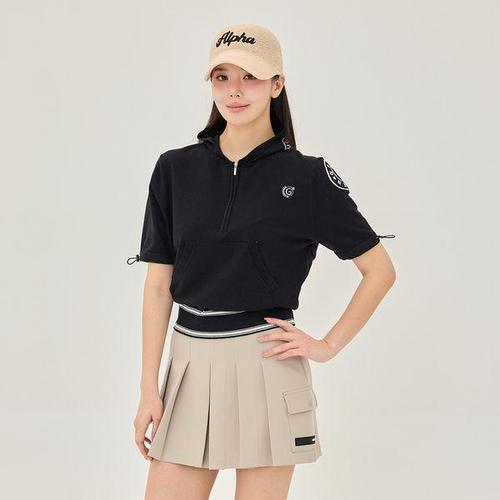 [제이투제이]여성골프웨어 하프집업 후드 반소매 니트