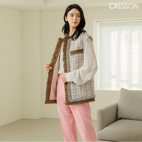 [크레송]크레송 핑크 여성 클래식 트위드베스트 C211VT01A_PK