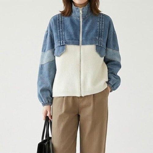 [핑크엘리제]청자켓 니트 하이브리드 캐주얼 내니핏데님집업
