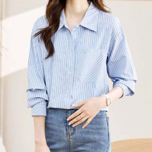 [셀럽하우스]여성 AYDD3369 하늘색 단가라 긴팔 셔츠 선생님 교사