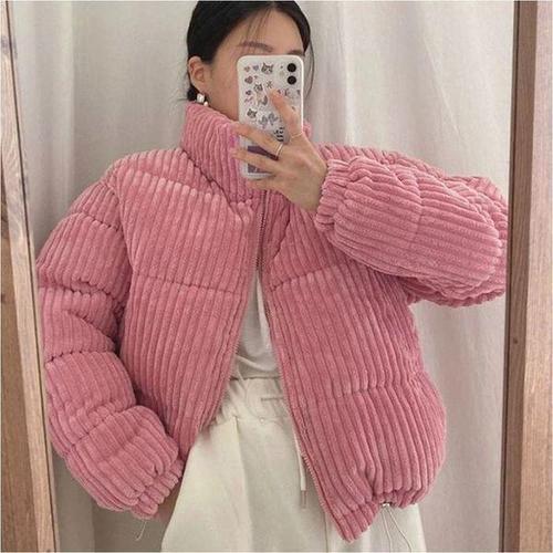 [셀러허브_여성트랜드패션]Rly 여성 코듀로이 하이넥 숏패딩 골덴 패딩 겨울 점