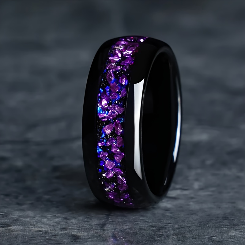 TEMU 독특한 퍼플 합성 인공 남성용 텅스텐 링 프로미스 블랙 돔 기념일 웨딩 밴드, 청소년용