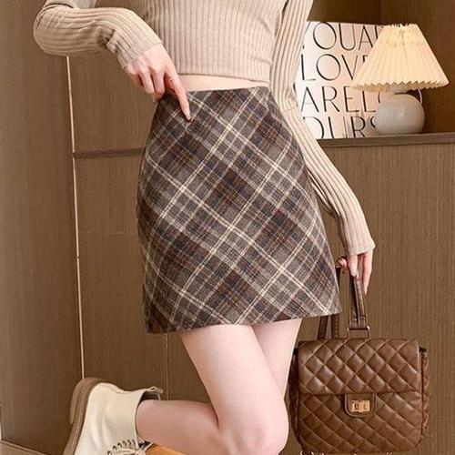 모직 겨울 체크 미니스커트 가을 치마 하이웨스트