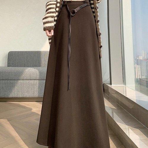 여자 겨울 하이웨이스트 데일리룩 A라인 롱스커트