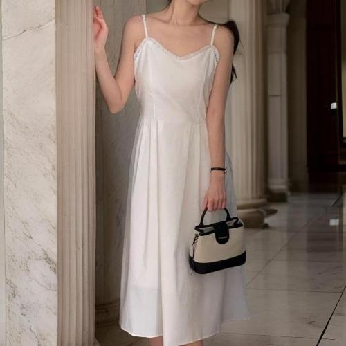 [신상오픈런]여성 블랙 하트넥 어깨끈 플레어 나시 롱 원피스