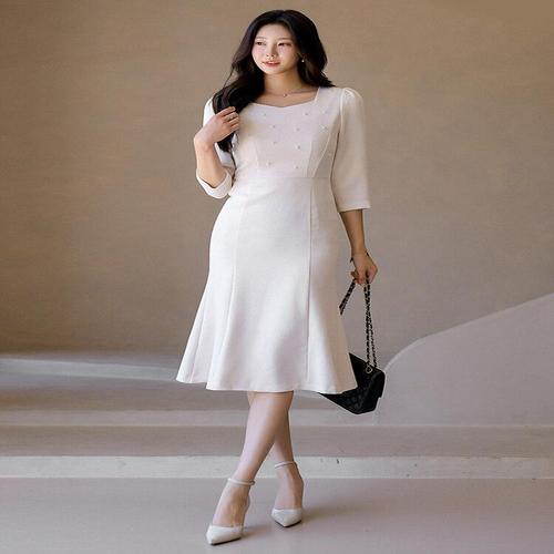 [스타일온미][스타일온미] 우아한 하트넥 진주 디테일 슬림 머메이드 라인 롱 원피스