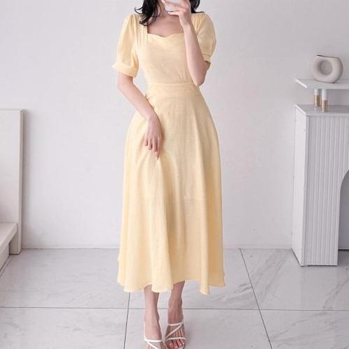 [다잇템][다잇템] 여성 숄더퍼프 허리스트랩 백지퍼 롱 하트네크 원피스_21132503_588872
