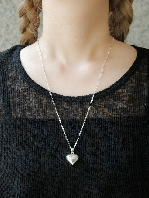 [제이로렌] Heart Pendant Chain Long Silver Necklace N01125