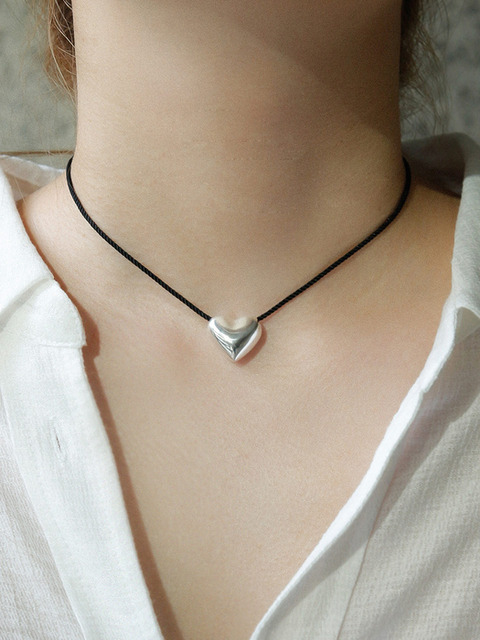 [제이로렌] Heart Pendant Long Silk Cord Freestyle Silver Necklace N01132