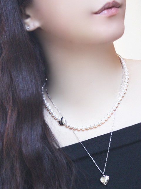 [글램뮤즈] 진주 하트 롱 레이어드 목걸이
