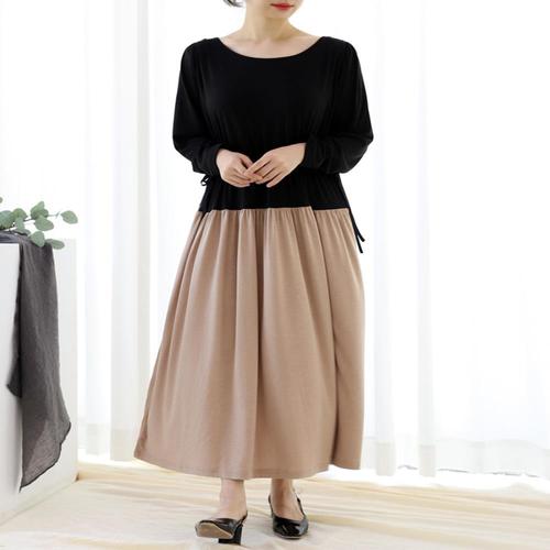 [옷자락] 여자 라운드넥 하프 배색 끈 긴팔 봄 가을 원피스