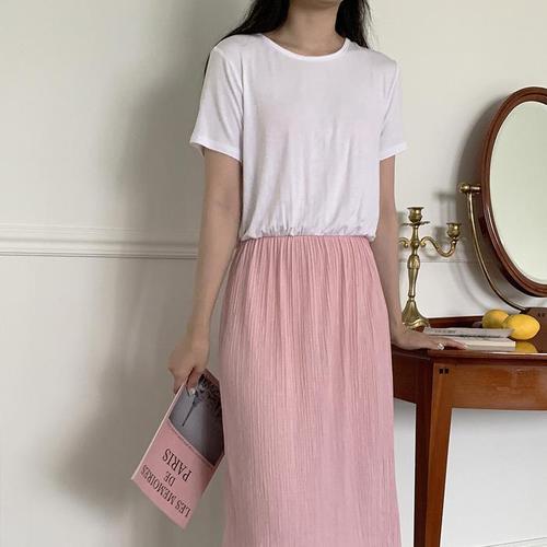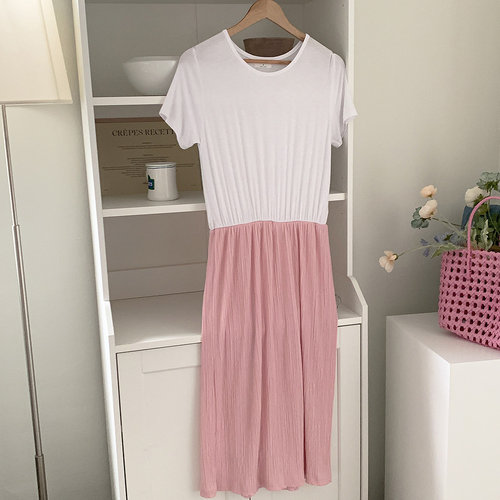H스타일(OP)하프배색원피스 봄 간절기 여성 OPS 데이트 하객룩 홈웨어 파자마 잠옷